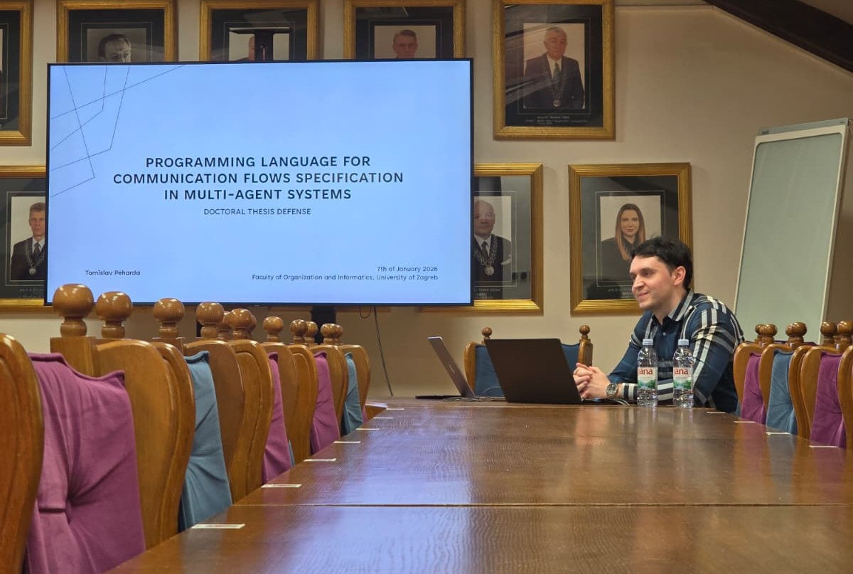 Doktorski rad Tomislava Peharde pod naslovom Programming language for communication flows specification in multi-agent systems (Programski jezik za specifikaciju komunikacijskih tokova u višeagentnim sustavima) izrađen je pod mentorstvom prof. dr. sc. Markusa Schattena, a obrana doktorskog rada održana je pred Povjerenstvom u sastavu: