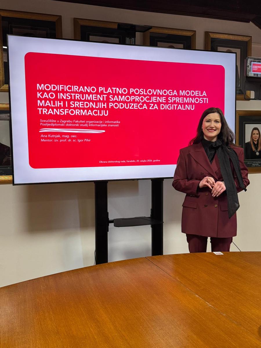 Doktorski rad Ane Kutnjak pod naslovom „Modificirano platno poslovnoga modela kao instrument samoprocjene spremnosti malih i srednjih poduzeća za digitalnu transformaciju" izrađen je pod mentorstvom izv. prof. dr. sc. Igora Pihira, a obrana doktorskog rada održana je pred Povjerenstvom u sastavu: