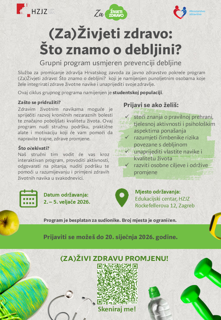 Prijaviti se mogu studenti putem poveznice dostupne na web stranicama Hrvatskog zavoda za javno zdravstvo i programa Živjeti zdravo, a rok za prijavu je 20. siječnja 2026. godine.
