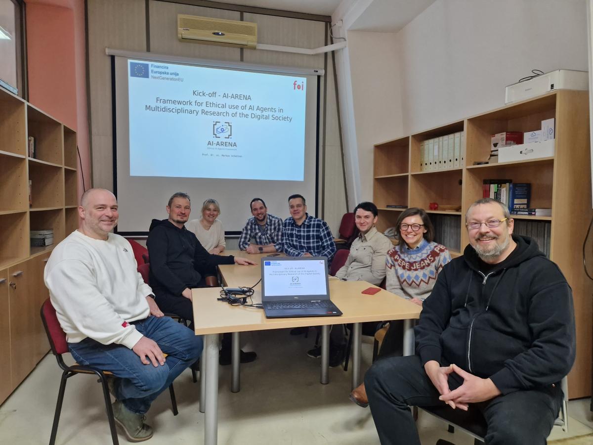 Na Fakultetu organizacije i informatike održan je kick-off sastanak institucionalnog istraživačkog projekta AI-ARENA – Okvir za etičku upotrebu AI agenata u multidisciplinarnim istraživanjima digitalnog društva. Projekt se provodi u sklopu institucionalnih istraživačkih projekata financiranih sredstvima Mehanizma za oporavak i otpornost (NPOO 2021.–2026.) / NextGenerationEU.