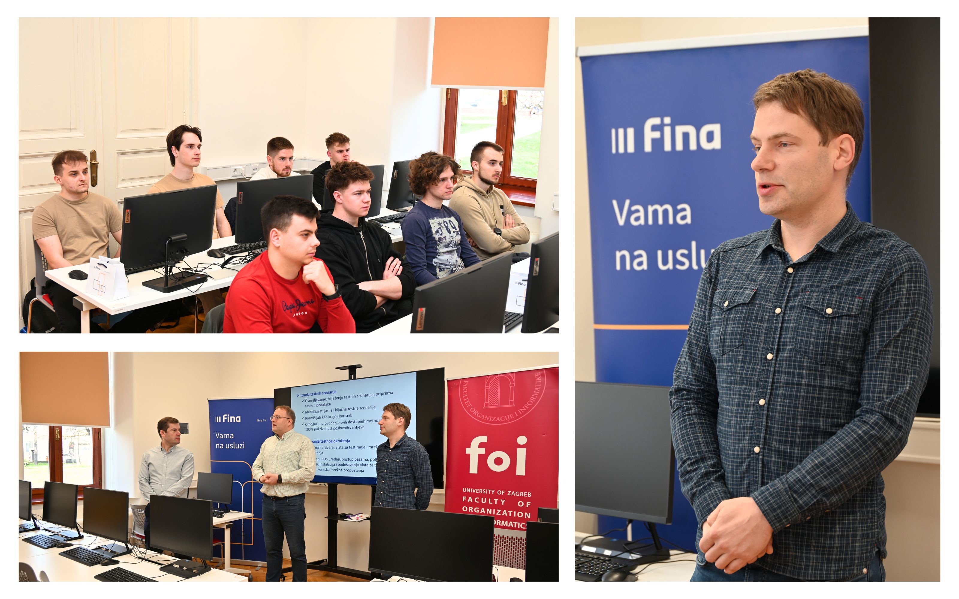 Prvo predavanje i radionicu održao je iskusni Fina stručnjak Damir Ranec, voditelj Odjela IT kvalitete, a tom prilikom su polaznike na prvom susretu pozdravili prodekan za nastavu i studente izv. prof. dr. sc. Zlatko Stapić, doc. dr. sc. Marko Mijač te viša savjetnica Centra za podršku studentima i razvoj karijera Romina Kelemen.